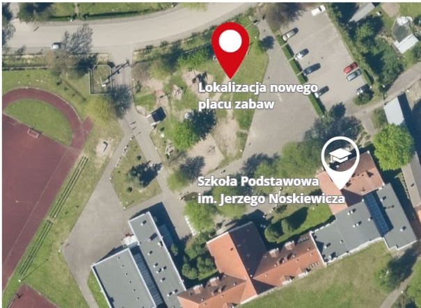 Szkoła Podstawowa im. Jerzego Noskiewicza z Oddziałami Dwujęzycznymi i Przedszkolnymi w Tanowie przy ul. Szczecińskiej 31 w Tanowie, sołectwo Tanowo nr działki 832. Inwestycja dotyczy rozbudowy - o nowe urządzenia służące do zabawy, rekreacji i odpoczynku - i modernizacji istniejących urządzeń znajdujących się na placu zabaw przed budynkiem szkoły przy głównym wejściu do budynku Szkoły, który umiejscowiony jest na powierzchni trawiastej.